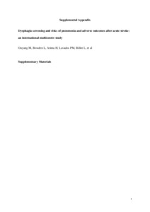 Dysphagia screening and risks of pneumonia and adverse outcomes after acute stroke: An international multicenter study.