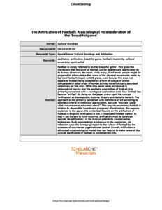 The Artification of Football: A Sociological Reconsideration of the ‘Beautiful Game'.