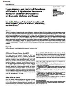 Hope, Agency, and the Lived Experience of Violence: A Qualitative Systematic Review of Children’s Perspectives on Domestic Violence and Abuse.