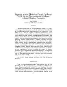 Engaging with the Media in a Pre and Post Brexit World: Racism, Xenophobia and Regulation: A United Kingdom Perspective.