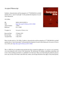 Gillies, James Millar orcid iconORCID: 0000-0002-9956-509X (2019) Synthesis, characterisation and bioconjugation of [109Cd]CdSe/ZnS core/shell quantum dots as “proof of principle” for the potential development of an anti-cancer theranostic. Inorganica Chimica Acta, 495 . p. 119001. ISSN 0020-1693