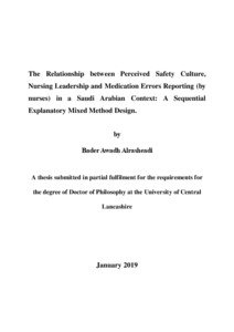 Alrasheadi, Bader Awadh A (2019) The Relationship between Perceived Safety Culture, Nursing Leadership and Medication Errors Reporting (by nurses) in a Saudi Arabian Context: A Sequential Explanatory Mixed Method Design. Doctoral thesis, University of Central Lancashire.