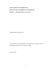 Roberts, Catherine (2018) Dark tourism and other death: mediating relationships in contemporary society - a transactional analysis. Doctoral thesis, University of Central Lancashire.