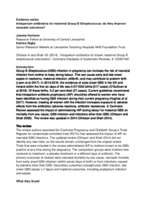 Intrapartum antibiotics for maternal Group B Streptococcus: do they improve neonatal outcomes? Review of Ohlsson A and Shah VS (2014). ‘Intrapartum antibiotics for known maternal Group B streptococcal colonisation’ Cochrane Database of Systematic Reviews, 6: CD007467.