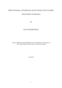 Speed, Faye Christabel (2018) Online Grooming: An Exploration into the Genetic-Social Variables which Enable Victimisation. Masters thesis, University of Central Lancashire.