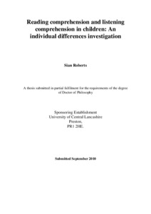 Roberts, Sian (2011) Reading comprehension and listening comprehension in children: An individual differences investigation. Doctoral thesis, University of Central Lancashire.