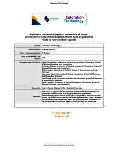 The series of rigidmeso-aminophenyl-substituted heptamethine dyes presented herein exhibit surprisingfluorescence properties, demonstrating larger Stokes shifts when compared with both structurally similar rigidmeso-chlorophenyl and linear heptamethine dyes. Based on their photophysical properties, these are ofconsiderable importance to the development of contrast agents, within biology and medicine.