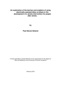 An exploration of the barriers and enablers of using electrically assisted bikes (e-bikes) in the development of a stroke intervention for people after stroke.