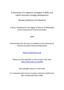 Meckel, Matthias Erich Manfred (2009) A taxonomy of e‐adoption strategies in SMEs and rapid e‐business strategy development. Doctoral thesis, University of Central Lancashire.