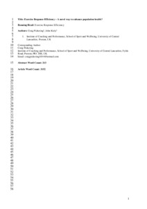 Exercise Response Efficiency: A Novel Way to Enhance Population Health?