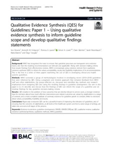 Qualitative Evidence Synthesis (QES) for Guidelines: Paper 1 – Using qualitative evidence synthesis to inform guideline scope and develop qualitative findings statements