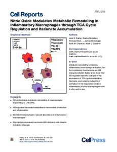 Shaw, Andrew (2019) Nitric Oxide Modulates Metabolic Remodeling in Inflammatory Macrophages through TCA Cycle Regulation and Itaconate Accumulation. Cell Reports, 28 (1). pp. 218-230. ISSN 2211-1247