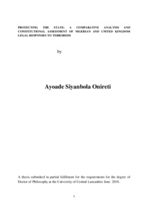 Onireti, Ayoade (2018) Protecting the state: A comparative analysis and constitutional assessment of Nigerian and United Kingdom legal responses to terrorism. Doctoral thesis, University of Central Lancashire.