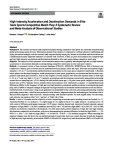 High-Intensity Acceleration and Deceleration Demands in Elite Team Sports Competitive Match Play: A Systematic Review and Meta-Analysis of Observational Studies.