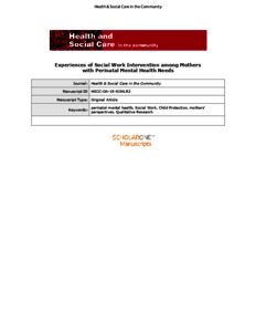 Experiences of social work intervention among mothers with perinatal mental health needs