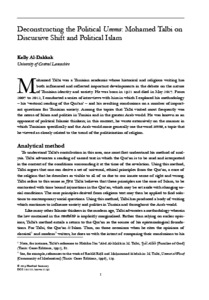 Al‐Dakkak, Kelly Lynn (2019) Deconstructing the Political Umma : Mohamed Talbi on Discursive Shift and Political Islam. The Muslim World, 109 (3). pp. 278-288. ISSN 0027-4909
