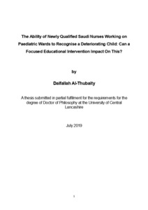 Al-Thubaity, Daifallah Dakhl d (2019) The Ability of Newly Qualified Saudi Nurses Working on Paediatric Wards to Recognise a Deteriorating Child: Can a Focused Educational Intervention Impact On This? Doctoral thesis, University of Central Lancashire.