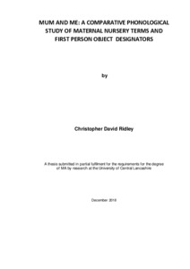 Ridley, Christopher David (2018) Mum and Me: A Comparative Phonological Study of Material Nursery Terms and First Person Object Designators. Masters thesis, University of Central Lancashire.