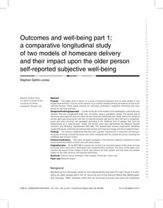 Gethin-Jones, Stephen (2012) Outcomes and Well-being Part 1: A comparative longitudinal study of two models of homecare delivery and their impact upon the older person self-reported subjective well-being. Working with Older People, 16 (1). pp. 22-30. ISSN 1366-3666