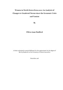 Radford, Olivia Anne (2018) Women in North Korea from 2000: An Analysis of Changes to Gendered Norms since the Economic Crisis and Famine. Masters thesis, University of Central Lancashire.