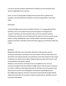 A Survey of University Students’ Preferences for Midwifery Care and Community Birth Options in 8 High‐Income Countries