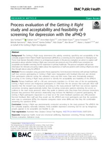 Farnbach, Sara, Gee, Graham, Eades, Anne-Marie, Evans, John Robert, Fernando, Jamie, Hammond, Belinda, Simms, Matty, DeMasi, Karrina, Glozier, Nick et al (2019) Process evaluation of the Getting it Right study and acceptability and feasibility of screening for depression with the aPHQ-9. BMC Public Health, 19 (1). p. 1270.