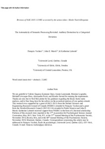 semantic processing is in fact susceptible to higher level cognitive influences, suggesting that this form of processing is instead conditionally automatic. The purpose of the present study was to revisit this debate using a novel approach: the automatic access to the meaning of irrelevant auditory stimuli was tested through the assessment of their distractive power. More specifically, we aimed to examine whether a categorical change in the content of to-be-ignored auditory sequences composed of speech items that are personally non-significant to participants (e.g., a digit among letters) can disrupt an unrelated visual focal task. In seven experiments, we assessed this categorical deviation effect and its functional properties. We established that distraction by categorical deviation is non-contingent on the activated task set and appears resistant to topdown control manipulations. By suggesting not only that the semantic content of the irrelevant sound can be extracted preattentively, but also that such semantic activation is ineluctable during auditory distraction, these findings shed new light on the automatic nature of semantic processing.