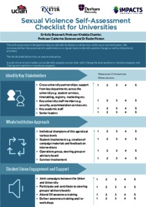 Findings from a national study to investigate how British universities are challenging sexual violence and harassment on campus and Sexual Violence Self-Assessment Checklist for Universities.