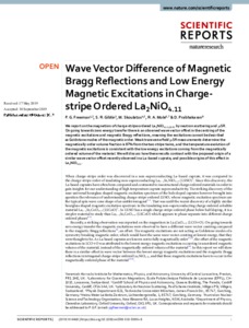 Wave Vector Difference of Magnetic Bragg Reflections and Low Energy Magnetic Excitations in Charge-stripe Ordered La2NiO4.11.
