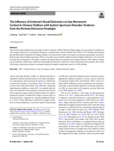 The Influence of Irrelevant Visual Distractors on Eye Movement Control in Chinese Children with Autism Spectrum Disorder: Evidence from the Remote Distractor Paradigm.