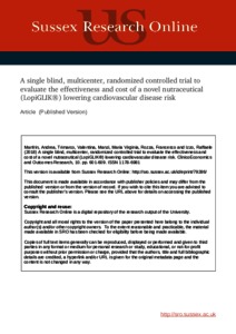 Manfrin, Andrea orcid iconORCID: 0000-0003-3457-9981, Trimarco, Valentina, Manzi, Maria Virginia, Rozza, Francesco and Izzo, Raffaele (2018) A single blind, multicenter, randomized controlled trial to evaluate the effectiveness and cost of a novel nutraceutical (LopiGLIK®) lowering cardiovascular disease risk. ClinicoEconomics and Outcomes Research, 10 . pp. 601-609. ISSN 1178-6981