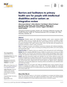 Barriers and facilitators to primary health care for people with intellectual disabilities and/or autism: an integrative review.