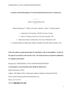Loneliness and the recognition of vocal socioemotional expressions in adolescence.