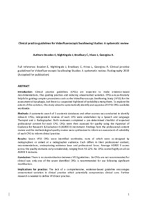 Implications for practice: The lack of a comprehensive, evidence-based guideline encourages unwarranted variation in clinical practice which potentially compromises clinical care. Further research is needed to define VFSS best practice.