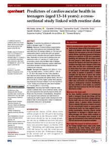 Predictors of cardiovascular health in teenagers (aged 13–14 years): a cross-sectional study linked with routine data.
