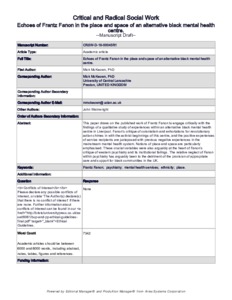 This paper draws on the published work of Frantz Fanon to engage critically with the findings of a qualitative study of experiences within an alternative black mental health centre in Liverpool. Fanon’s critique of colonialism and exhortations for revolutionary action chimes in with the activist beginnings of this centre, and the positive experiences of service recipients are juxtaposed with previous negative experiences in the mainstream mental health system. Notions of place and space are particularly emphasised. These crucial variables were also arguably at the heart of Fanon’s critique of western psychiatry and its institutional failings. The relative neglect of Fanon within psychiatry has arguably been to the detriment of the provision of appropriate care and support for black communities in the UK.