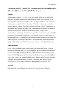 Unmaking the Tricolore: Catherine Flon, Material Testimony and Occluded Narratives of Female-Led Resistance in Haiti and the Haitian Dyaspora.
