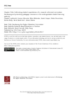 Cultivating student expectations of a research- informed curriculum: Developing and promoting pedagogic resonance in the undergraduate student learning pathway. In Developing the Higher Education Curriculum Research-based Education in Practice, Edited by Brent Carnell and Dilly Fung.