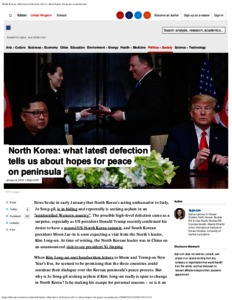 Lim, Sojin orcid iconORCID: 0000-0003-1395-7672 (2019) North Korea: what latest defection tells us about hopes for peace on peninsula. The Conversation .