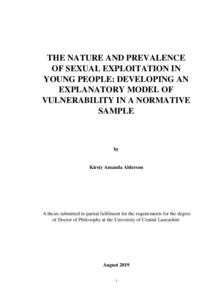 Alderson, Kirsty Amanda (2019) The nature and prevalence of sexual exploitation in young people: Developing an explanatory model of vulnerability in a normative sample. Doctoral thesis, University of Central Lancashire.