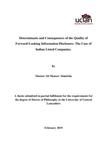 Alnabsha, Mansor (2019) Determinants and Consequences of the Quality of Forward-Looking Information Disclosure: The Case of Indian Listed Companies. Doctoral thesis, University of Central Lancashire.
