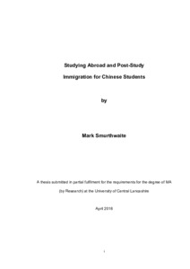 Smurthwaite, Mark (2018) Studying Abroad and Post-Study Immigration for Chinese Students. Masters thesis, University of Central Lancashire.