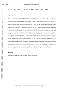 This paper takes as its focus the Midland Group Gallery in order to first, make a case for the consideration of the geographies of art galleries. Second, highlight the importance of galleries in the context of cultural geographies of the sixties. Third, discuss the role of provinciality in the operation of art worlds. In so doing it explicates one set of geographies surrounding the gallery