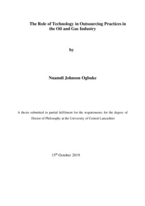 Ogbuke, Nnamdi Johnson (2019) The Role of Technology in Outsourcing Practices in the Oil and Gas Industry. Doctoral thesis, University of Central Lancashire.