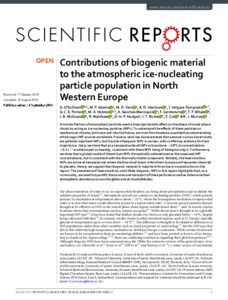 Contributions of biogenic material to the atmospheric ice-nucleating particle population in North Western Europe.