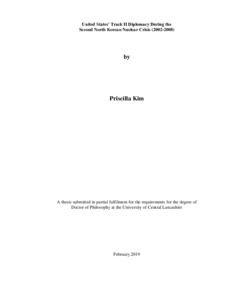 Kim, Priscilla Jung (2019) United States’ Track II Diplomacy During the Second North Korean Nuclear Crisis (2002-2008). Doctoral thesis, University of Central Lancashire.