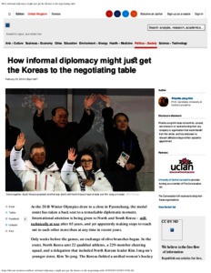 Kim, Priscilla Jung (2018) How informal diplomacy might just get the Koreas to the negotiating table. The Conversation .