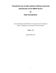 Ramsbottom, Helen (2019) Transitional care of older patients utilising community pharmacists via the dMUR service. Doctoral thesis, University of Central Lancashire.