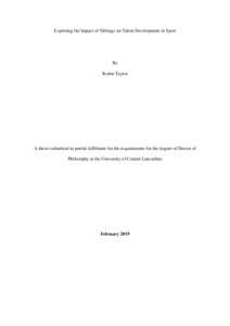 This thesis aimed to address and inform the gap in current literature around the role of family during talent development in sport, through an exploration of sibling impact. This was achieved through a series of studies with siblings across a range of sports and phases of talent pathways. Chapter 2 highlighted the disproportionate research focus on the role of parents in sport. It also identified Family Systems Theory as an appropriate theoretical lens through which to view future studies. A retrospective study was then conducted to explore the perceptions of athletes and their siblings who went on to achieve elite status across a range of sports, with a view to uncovering whether the sibling relationship had been perceived as beneficial (Chapter 3). Findings illuminated the potential nonlinear nature of the sibling relationship. Accordingly, Chapter 4 employed a longitudinal approach, to further explore the temporal nature of the relationship as it unfolds. This approach highlighted the change in use and importance of mechanisms both within and across sibling sets, as well as highlighting the biopsychosocial impact of the relationship on development. Furthermore, including parents’ perceptions of the relationship provided some initial practical considerations for coaches seeking to utilise the sibling relationship for development. Chapter 5 adopted a practice-based investigation exploring twin relationships in talent development, employing observations across a 7-month period through the researcher’s involvement as a coach. Thus, highlighting further practical considerations, alongside continued confirmation of the multifaceted, complex and individualised nature of the sibling relationship. Chapter 6 discussed the biopsychosocial developmental role siblings may have, and reinforced the detail provided through examining such a relationship from a Family Systems perspective, before identifying overarching implications for practice. Finally, Chapter 7 summarised the key messages around the impact of siblings on talent development and highlights the need to continue to explore the relationship.