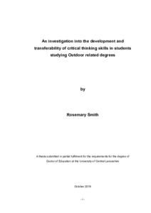 Smith, Rosemary (2019) An investigation into the development and transferability of critical thinking skills in students studying Outdoor related degrees. Masters thesis, University of Central Lancashire.